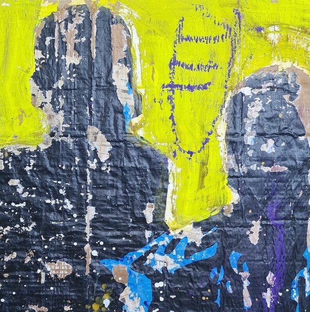 Armand Boua (b. 1978, Abidjan) is an Ivorian artist whose work portrays the resilience and vulnerability of street children. Using tar, acrylic, newsprint, and cardboard, he creates layered compositions where fading silhouettes emerge from textured surfaces, transforming decay into beauty. Balancing social critique with compassion, Boua’s paintings evoke memory, marginalization, and the quiet endurance of the human spirit.