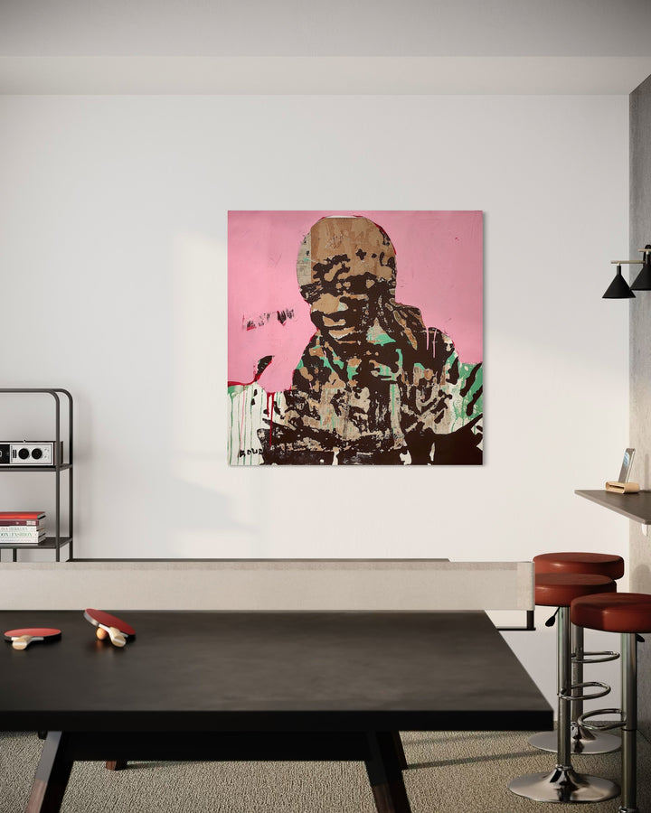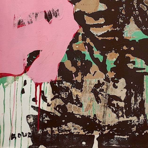 Armand Boua (b. 1978, Abidjan) is an Ivorian artist whose work portrays the resilience and vulnerability of street children. Using tar, acrylic, newsprint, and cardboard, he creates layered compositions where fading silhouettes emerge from textured surfaces, transforming decay into beauty. Balancing social critique with compassion, Boua’s paintings evoke memory, marginalization, and the quiet endurance of the human spirit.