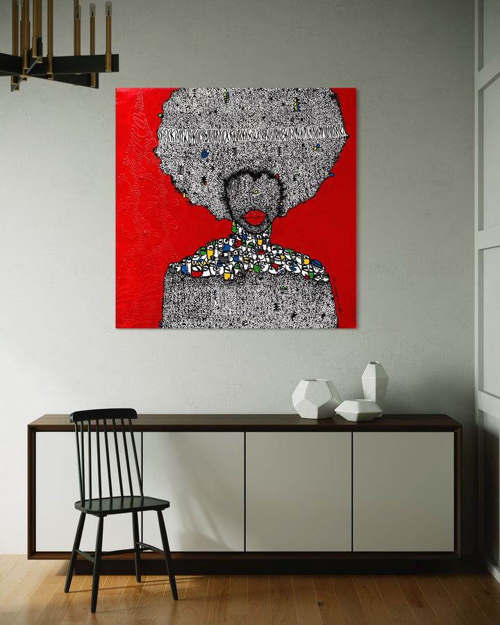 Eghosa Raymond Akenbor is a Nigerian artist with a talent for experimentation and dramatic artistic expressions. His juxtaposition of colours and found objects makes his canvases full of interesting and unique stories that aim to evoke a wide range of feelings in the viewer. His works constantly exude vibrancy, countless formations, storied shapes, and intrinsic textures that aim to evoke emotive magic that transports it to a whole new world.