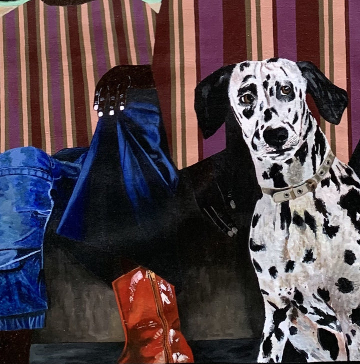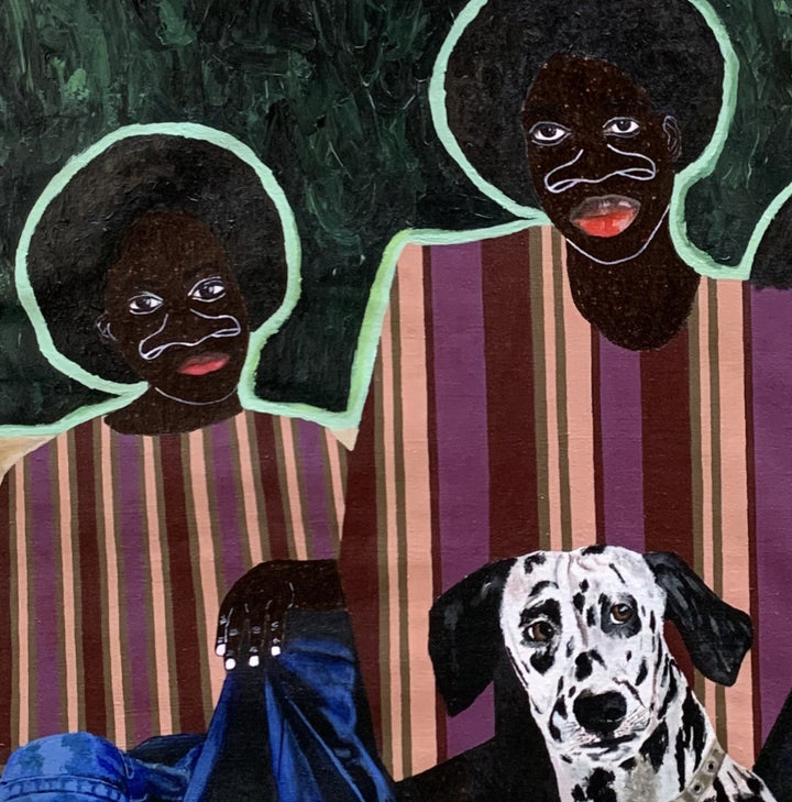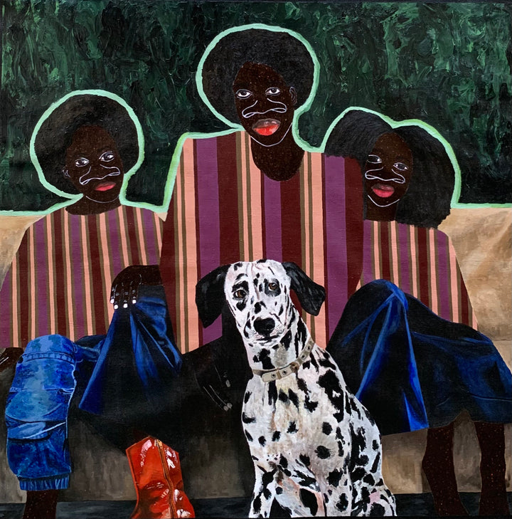 Akintomide’s art explores identity, culture, and human connection. Using ink and acrylic, he creates figurative portraits that highlight the beauty and resilience of relationships. His distinctive facial exaggerations—especially the nose—reflect personal experiences transformed into symbols of strength and individuality. Blending African and non-African fabric patterns, his work reimagines cultural ties and celebrates shared humanity through themes of identity, belonging, and connection.