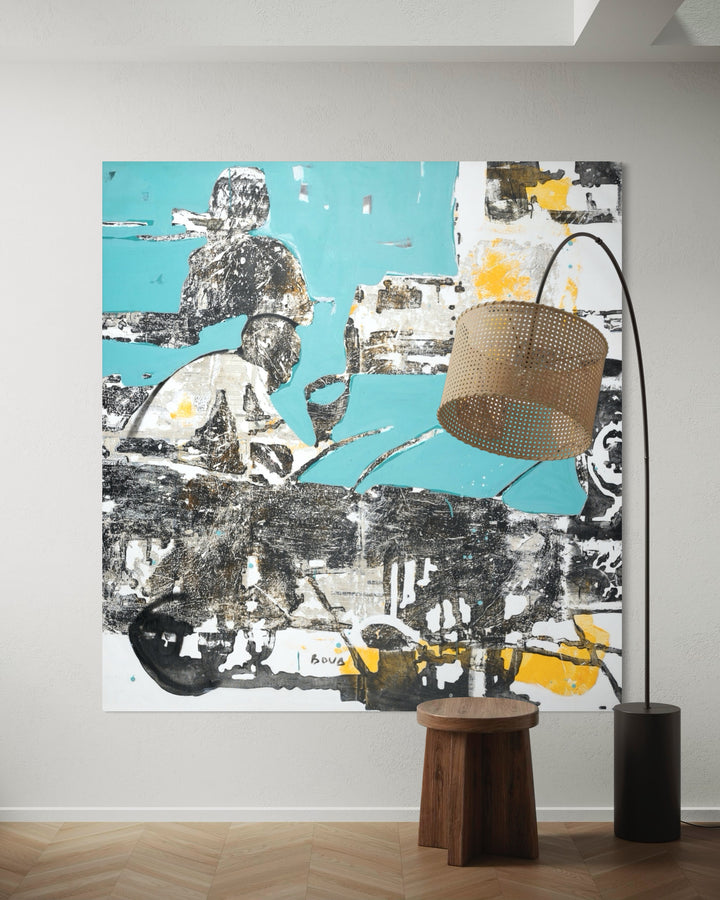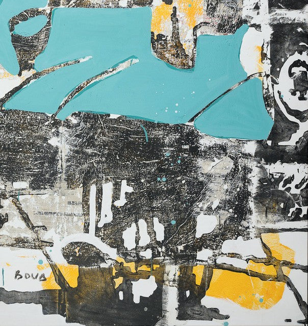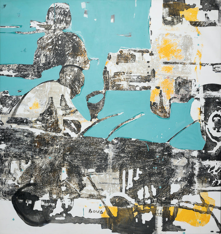 Armand Boua (b. 1978, Abidjan) is an Ivorian artist whose work portrays the resilience and vulnerability of street children. Using tar, acrylic, newsprint, and cardboard, he creates layered compositions where fading silhouettes emerge from textured surfaces, transforming decay into beauty. Balancing social critique with compassion, Boua’s paintings evoke memory, marginalization, and the quiet endurance of the human spirit.