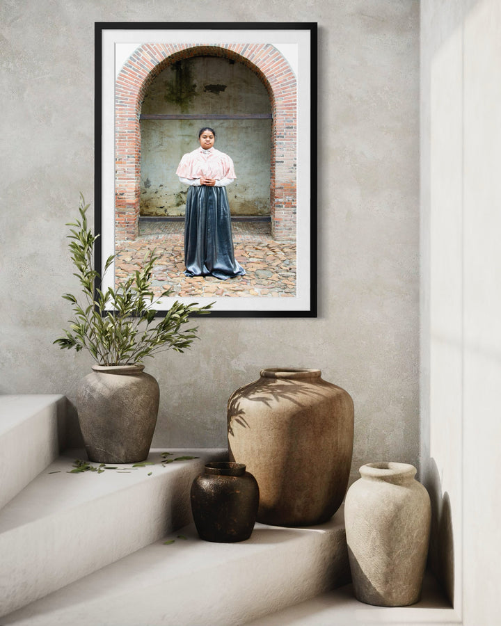 Gina-Rose Bolligello (b. 2001, Cape Town) is a visual artist whose work seeks to illuminate what history has silenced. Working across photography, video, and printmaking, she explores the colonial past of the Cape through a hauntological lens, reimagining the lives and presences erased from official record. Where archives fall silent, she introduces ‘ghosts’—figures that embody memory, resistance, and the persistence of being.