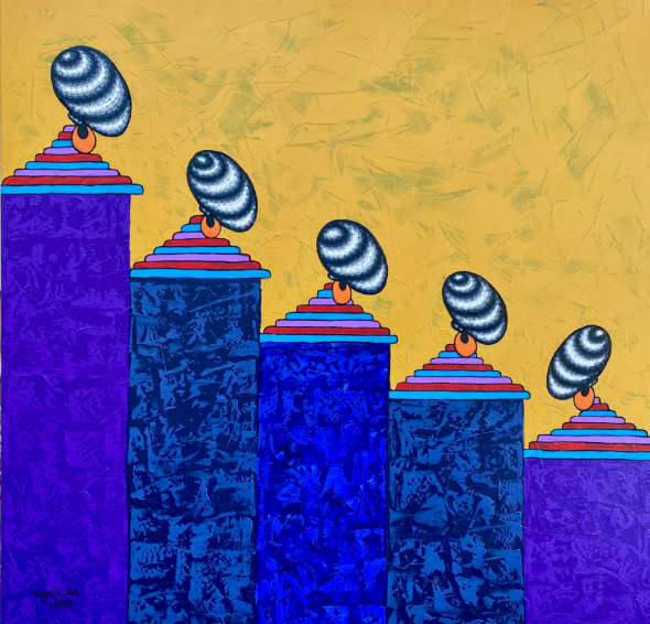 Mugabo's artistic repertoire encompasses an array of techniques and materials, with a particular focus on paintings and paper crafts. His artworks are distinguished by their impeccable finish and tactile qualities, reflecting his meticulous approach to his craft.