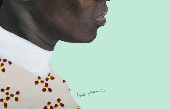 He draws inspiration from societal issues and struggles that life demands. His works are centered around the beauty and culture of people of color with a primary focus on women.
