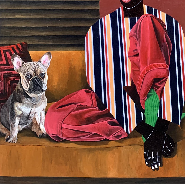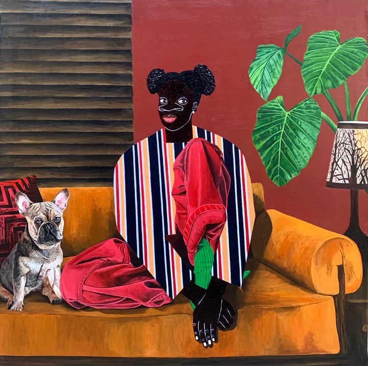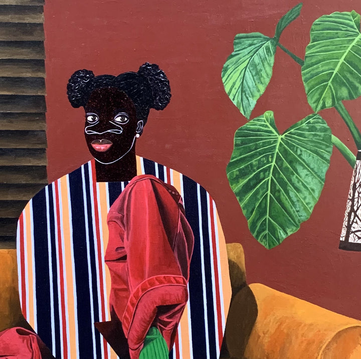 Akintomide’s art explores identity, culture, and human connection. Using ink and acrylic, he creates figurative portraits that highlight the beauty and resilience of relationships. His distinctive facial exaggerations—especially the nose—reflect personal experiences transformed into symbols of strength and individuality. Blending African and non-African fabric patterns, his work reimagines cultural ties and celebrates shared humanity through themes of identity, belonging, and connection.