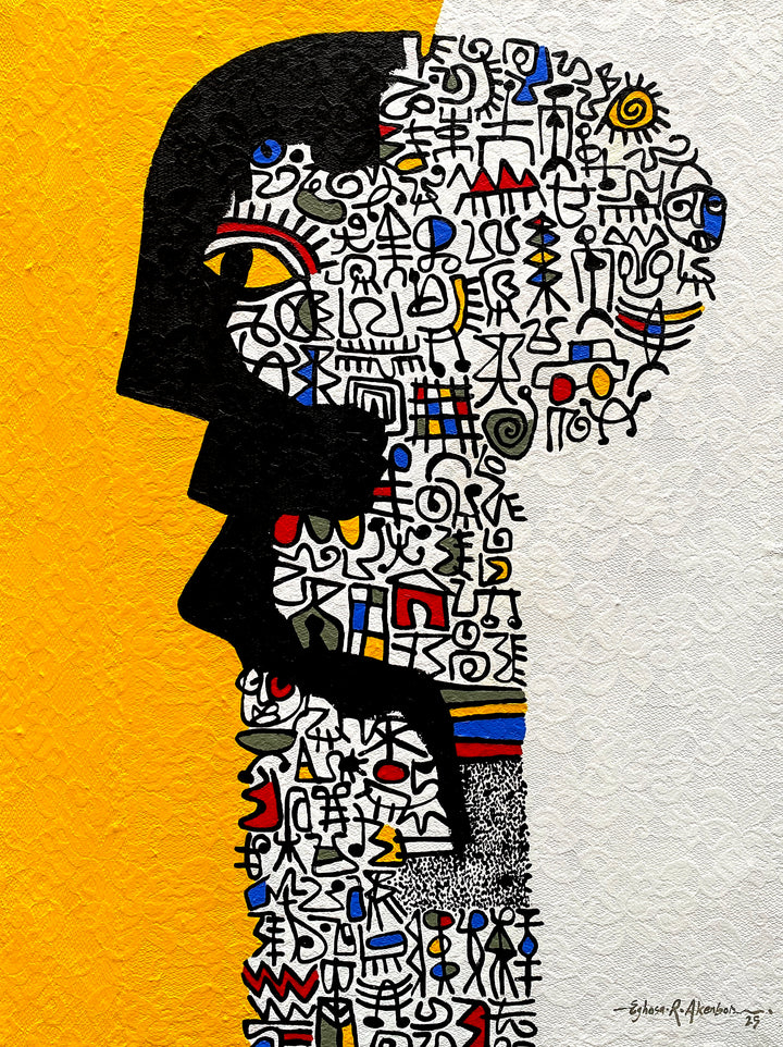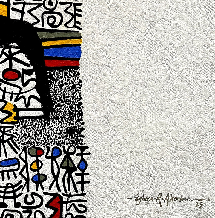 Eghosa Raymond Akenbor is a Nigerian artist with a talent for experimentation and dramatic artistic expressions. His juxtaposition of colours and found objects makes his canvases full of interesting and unique stories that aim to evoke a wide range of feelings in the viewer. His works constantly exude vibrancy, countless formations, storied shapes, and intrinsic textures that aim to evoke emotive magic that transports it to a whole new world.
