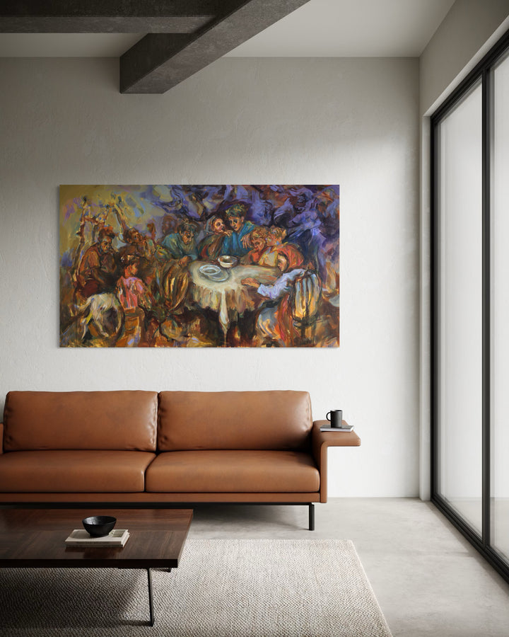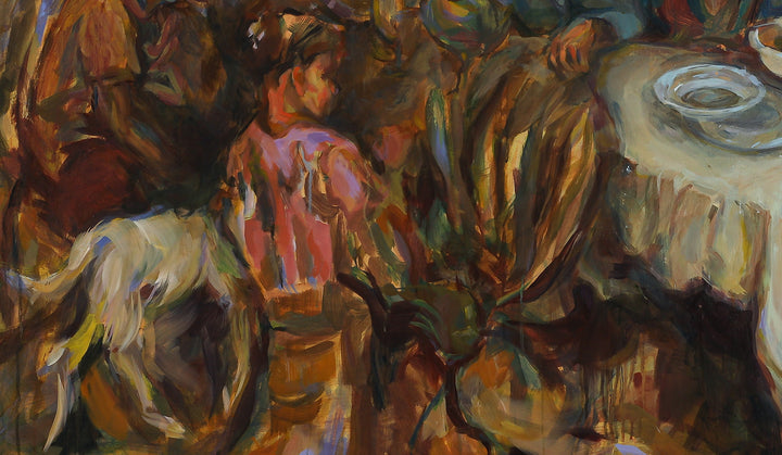 Maryam's work delves into themes of human connection and community, often using the act of sharing a meal as a central motif. In their paintings, the table becomes more than a mere setting; it transforms into a stage where individual stories and emotions converge, creating a rich tapestry of interaction. Through this symbolic lens, they evoke a sense of nostalgia and unity, celebrating shared experiences and the bonds that connect us.