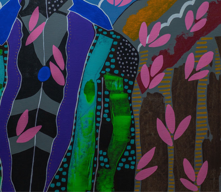 Her work elegantly blends contemporary design with the rich themes of her African heritage. Through her paintings, Taya delves into the essence of self-identity and the complexities of emotion, drawing from philosophical perspectives to bring depth and meaning to her creations. Her figurative abstract style merges geometric and organic forms, creating evocative representations of states of being that reflect her experiences and the ever-changing social contexts in which she is immersed.