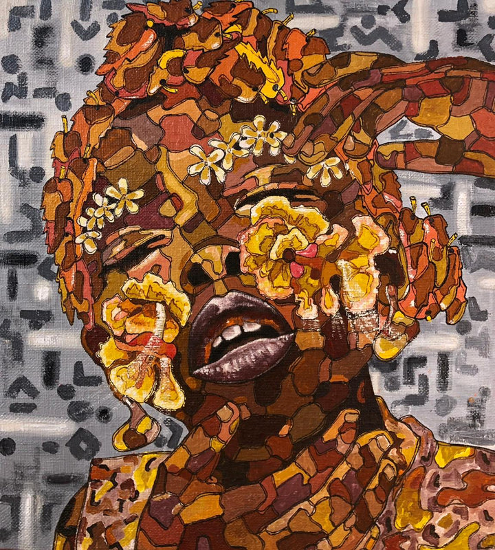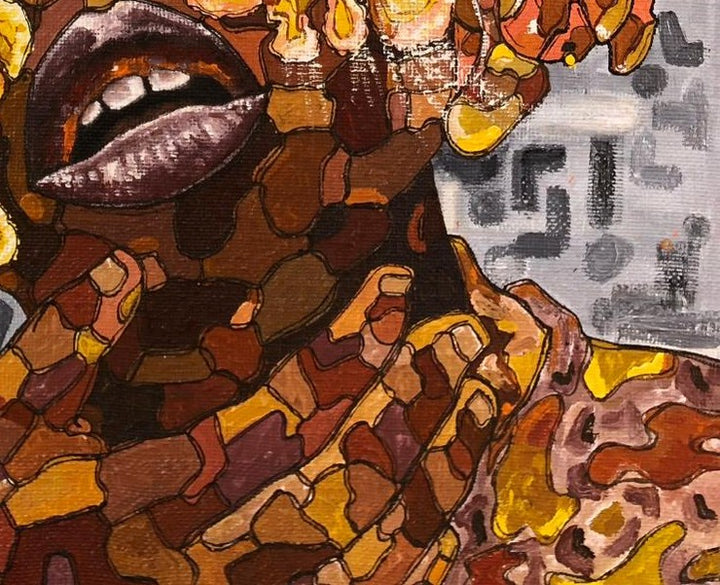 Blending African cosmology with Afro-Brazilian traditions, his layered compositions reflect heritage, vulnerability, and healing — positioning him as a vital voice in the Afro-Atlantic art discourse.